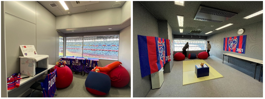 Regarding sports viewing, initiatives have been taken mainly at soccer stadiums. Since around 2019, following the lead in the UK, sensory rooms have been provided at the Uvance Todoroki Stadium by Fujitsu in Kawasaki City, the Japan National Stadium, and the Ajinomoto Stadium in Chofu City for children who have difficulty watching games in noisy general seating. In recent years, they have been installed permanently in new stadiums, such as those in Hiroshima, Osaka, and Kobe.