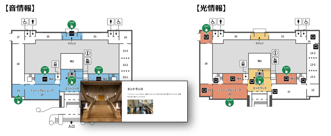 The development of sensory maps, which are available at museums in the UK and the US, is also gradually progressing. These maps visualize sensory stimulation by marking places that have distinctive lights or sounds. The maps help persons with ASD, who become easily confused by unexpected events, cope with such situations through prediction in advance.